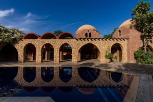 The wedding venue, Nūt Boutique Farm Lodge, is about 1 hour from Downtown Cairo.