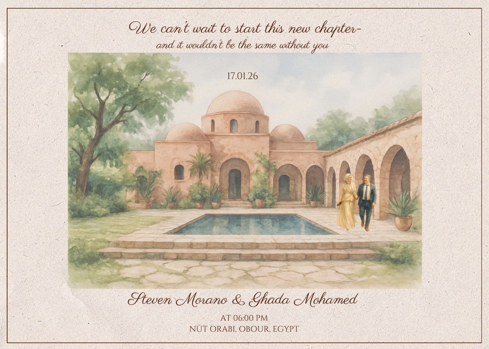 Although the wedding itself will take place at NŪT Boutique Farm Lodge in Obour (Ahmed Orabi area), we recommend that guests stay in downtown Cairo.